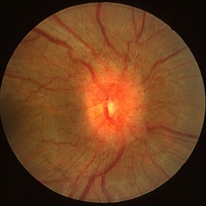 Optic nerve granuloma of sarcoidosis in the right eye of a patient with bilateral involvement #1. Left eye is in the following slide.