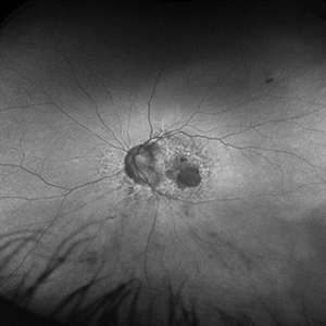 Left Fundus autfluorescence of a woman on PPS for 15 years