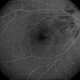 Myopic Choroidal Neovascular Membrane Myopic Choroidal Neovascular MembraneMar 25 2013 by Ratimir Lazic, MD, PhD FAG image of a 33-year-old female. In foveolar region leakage of dye can be noticed. The patient is high myopic and has decreased visual acuity. Photographer: Marko Lukic, MD Imaging device: Zeis Visucam Lite 2 Condition/keywords: choroidal neovascularization (CNV)