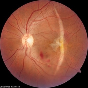 Fundus photograph of a 35 year old gentleman on the day of blunt trauma.