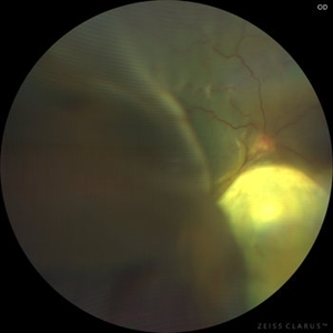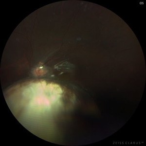 78-year-old man with history of defective following cataract surgery showed total retinal detachment on examination