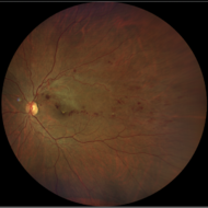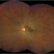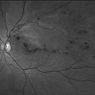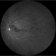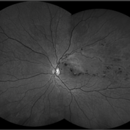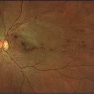 Branch retinal vein occlusion - Colour & Red free image - ring shaped collaterals