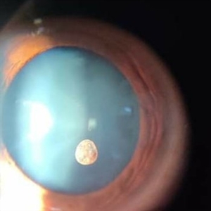 Fundus photograph of an 25 year old male with a floating vitreous cyst.