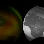 Fundus photograph of an 18 year-old male with bilateral choroiditis. Tuberculosis work-up revealed positive QuantiFERON Gold test and Mantoux test. Patient was started anti-tuberculosis treatment along with oral corticosteroids. Optos fundus photography shows extensive active plus healed lesions with pigmentary change in the midperipheral retina and periphery suggesting varied stage presentation of lesions. There are few hemorrhages in right eye superotemporal retina.