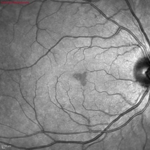 18 yo female presenting with hazy vison for 2-3 weeks. VA OD: sc20/20 VA OS: sc20/20 Infrared imaging showed dark gray, petalloid, perifoveal lesions and OCT shows focal signal reduction of the Inner Segment / Outer Segment junction. Elects to observe.