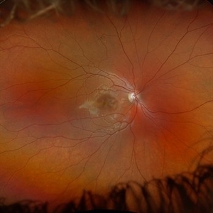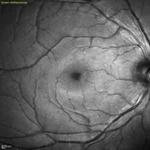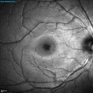 Blue reflectance image of a 30 yo female with PAMM OD.