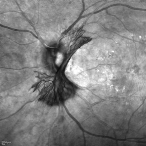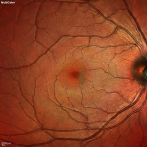 Multi-color fundus of a 30 yo female with PAMM OD.