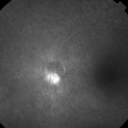 66-year-old white male without history of tuberous sclerosis was found to have an incidental, asymptomatic, traslucent, retinal lesion with a few small telangiectatic vessels within it. The FA showed early hyperFL of these small vessels with prominent late leakage/staining. The OCT showed a retinal mass with a "moth eaten" appearance. Vision was 20/20 and the rest of the exam was unremarkable.