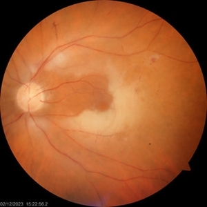 Central Retinal Artery Occlusion with cilioretinal artery sparing Central Retinal Artery Occlusion with cilioretinal artery sparingDec 13 2023 by MEENAL SONI A 62 year old male presented with LE sudden diminution of vision with a nasal field defect for past 2 days. On fundus examination we diagnosed CRAO with cilioretinal sparing. Although having a BCVA of 6/9 patient had a bothersome nasal field defect. Photographer: Dr. Meenal Soni, Fellow VR, ASG eye Hospital Jodhpur Imaging device: Visucam Condition/keywords: CRAO with cilioretinal sparing