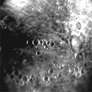 Retro mode image of a patient who underwent vitrectomy for RRD , with sub-retinal multiple PFCL bubbles giving appearance of arrangement of planets & other bodies in a galaxy