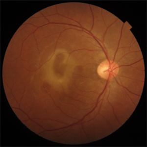 CSCR with Sub-Retinal Fibrin CSCR with Sub-Retinal FibrinFeb 6 2024 by Thirumalesh Mochi Basavaraj, MD 43 year old gentleman with a chronic central serous chorioretinopathy with sub retinal fibrin deposition. Photographer: Puttaswamy Condition/keywords: central serous chorioretinopathy (CSCR), subretinal fibrin deposition