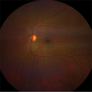 Fundus photograph of a 60 year-old asymptomatic female with a choroidal macrovessel.