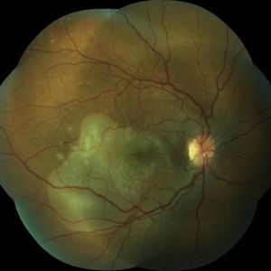 Fundus photo of a 35 year old female presenting with pain and defective vision.