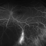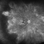 Fluorescein angiography on a patient with Moderate Nonproliferative Diabetic Retinopathy at 5 minutes.