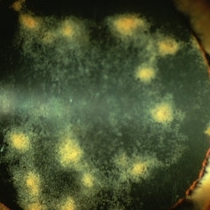 Multiple metallic intraocular foreign bodies on the posterior pole.