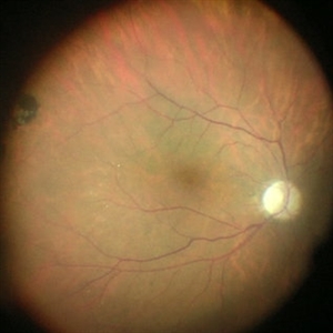 Intra-operative funds photo of the macula after ICG staining with removal of excess dye from the vitreous cavity.