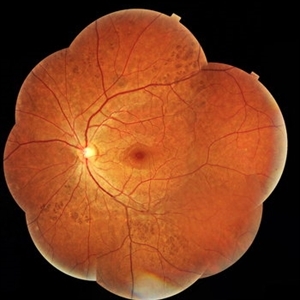 Color fundus montage of a 22-year-old man with congenital hypertrophy of retinal pigment epithelium.