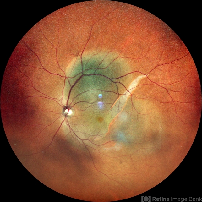 - Color photo wide field image in a of 61 year old male with RPE rip in a case of Idiopathic Polypoidal Choroidopathy.