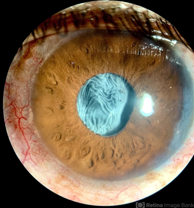 - Imprint of Iris Pigmentation on Anterior Lens Surface with wrinkled anterior capsule
