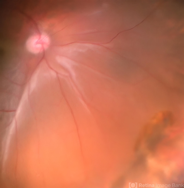 - Intra operative image showing us a bullous retinal detachment with retinal break noted inferiorly.