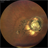 - 47 year old female patient, presents to evaluate low vision since birth. Fundus photography shows an enlarged disc, with radial vasculature disposition, and glial tissue; corresponding with a Morning Glory Anomaly, with macular atrophy.
