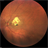 - 60 year old female with an end-stage proliferative macular telangiectasia type 2 with right-angle retinal vessels, manifested as blunted arterioles and venules that connect the superficial and deeper retinal plexus, chorioretinal anastomosis with a fibrovascular scar and a typical retinal pigment hyperplasia , fellow eye showed a focal discontinuity in the ellipsoid zone with a loss of the outer and a disorganization of the inner retinal layers, not involving the foveal center and a non exudative neovascularization