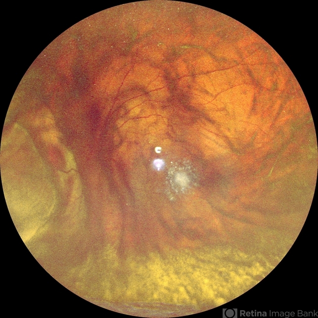 - A 65 year old diabetic male presented with large nasal retinal mass giving the appearance of organized dehaemoglobinized subretinal hemorrhage with breakthrough vitreous hemorrhage , with 6/6P vision. Enucleation specimen showed histopathology confirmed choroidal melanoma.