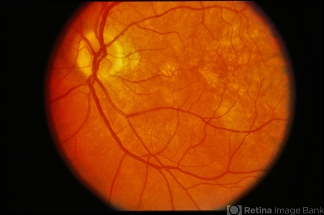 - 40-year-old female, blurry vision for 4 months; DM & Hx of thyroid; 20/30- OU Normal VF; Meta on Amsler OU.