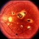 - Wide field fundus photograph of a 61-year-old female with decreased vision in both eyes due to multifocal choroiditis and panuveitis.