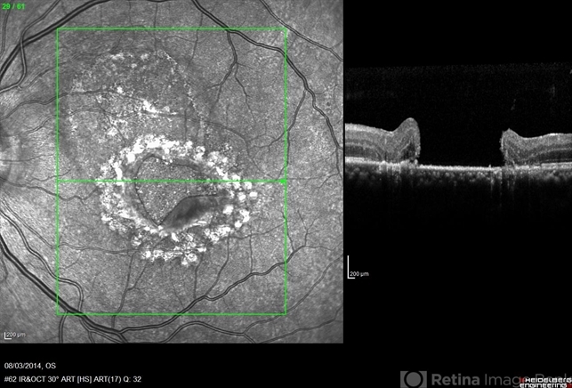 - OCT a 40-year-old man with macular tear (had a photocoagulation laser).