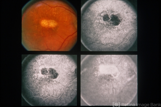 - 70-year-old white male. 20/30 and 20/70. SRNV-MD.
