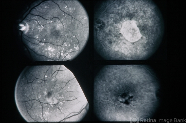 - 74-year-old white male. AOFPED. RE 20/50 LE 20/350.