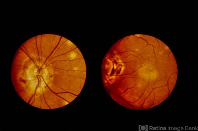 - Presumed Ocular Histoplasmosis Syndrome both eyes showing multiple active lesions.
