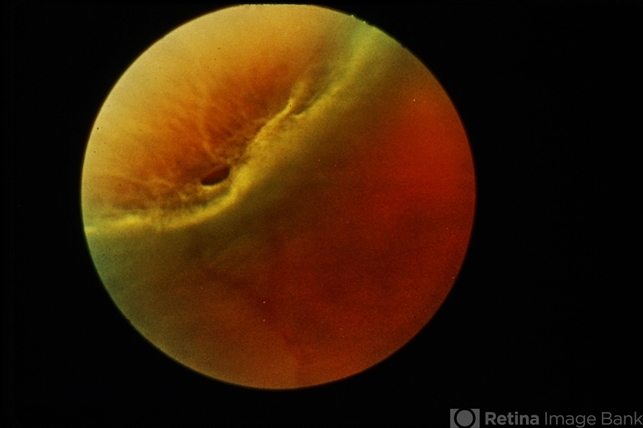 - Retinal detachment with lattice degeneration and holes (stereo pair A).