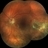 - The same patient one month after systemic treatment with Gancyclovvir and HAART ; resolved retinitis and hemorrhages, granular pattern remains as the outer retina is damaged.