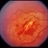 - Trauma – posterior penetration – no history, probably double perforation. Some laser surround the lesion. Fundus photo, inferotemporally OD.