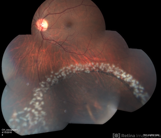- Retinal detachment with partial demarcation line and same day barrier laser treatment.