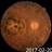- color fundus photograph, macular coloboma, pigmentary retinal dystrophy, bilateral pigmentary retinopathy