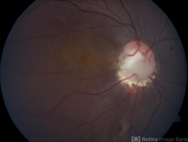 - 14-year-old girl at routine check-up and fundus picture found optic disc coloboma.