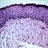 - Thick layer of basophilic (bluish) glassy fibers in the subepithelial tissue represents elastosis.