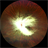 - Left eye fundus photograph of a 29-year-old male with extensive myelinated retinal nerve fibers appearing as grey white opaque lesions on the retina with feathery edges obscuring the retina.