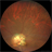 - 45-year-old female, with choroidal osteoma. silicone oil droplet in the periphery, after intravitreal injection.