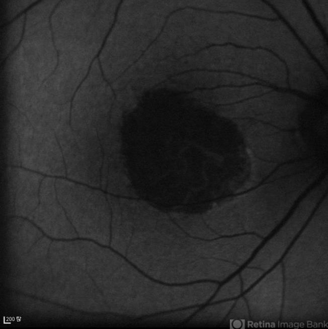 - FAF image of an 78-year-old woman. Her best-corrected visual acuity was counting fingers at 30cm.