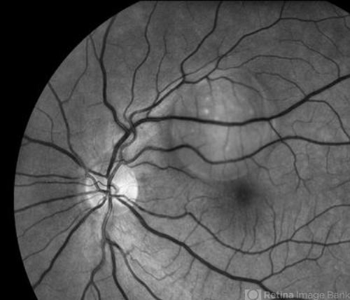 - A 38-year-old male who came in with blurred vision in the left eye. VA is 20/30. Noticed a defect inferior of his central vision. Did an fluorescein angiogram to determine an RPE with no subretinal fluid. Also OCT confirms. Patient was injected with Avastin.