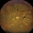 - 61 yo male with PMH of longstanding schizophrenia since 20s with secondary intellectual disability presented with decreased vision following a recent stroke. He was found to have bilateral chorio-retinal atrophy involving posterior pole with scalloped edges and coin shaped atrophic area at margins extending into mid-periphery, diagnosis most concerning for intermediate stage thioridazine toxicity given the history. Mother could find handwritten prescriptions from 1990s when he was on Thioridazine 800 mg daily for unknown period of time. Patient had better vision in the left eye which was affected by recent stroke and prompted him to seek medical care. Fundus photograph of the right eye is demonstrated here.
